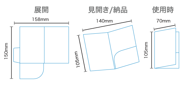 カードキーケースの中でも最も一般的で人気が高い形状で、ポケット部分を組み立てた状態で納品されます。ポケット部分は頑丈な糊貼り仕様(テープ貼の場合あり)で、厚みのある内容物もしっかりと収納できます。