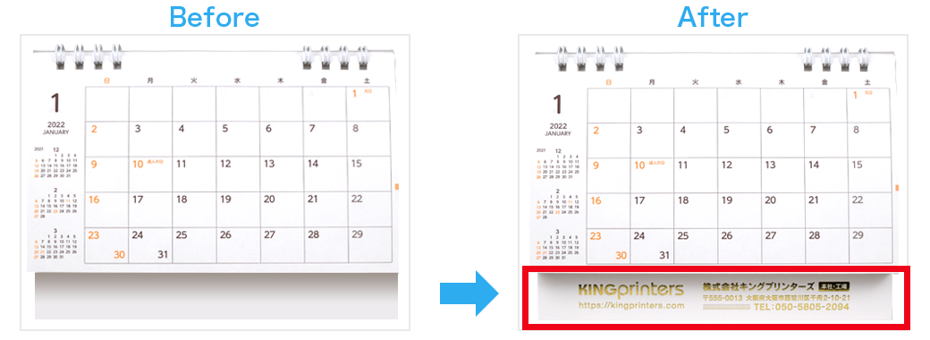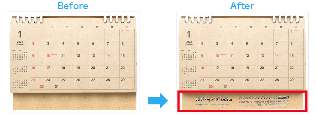また、台紙とカレンダー部分が同系統の用紙なので一体感のある仕上がりです。