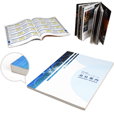 本の背表紙を糊で固定する「無線綴じ冊子」を、お求めやすい価格で100冊の小ロットから作成します。長期間保管ができるため、教材・写真集・同人誌・書籍・小説など、ページ数が多いものにオススメです。また、背の部分が四角く、背表紙にタイトル等も印刷できます。表紙を厚みがある紙に変更し、高級感を演出することも。
