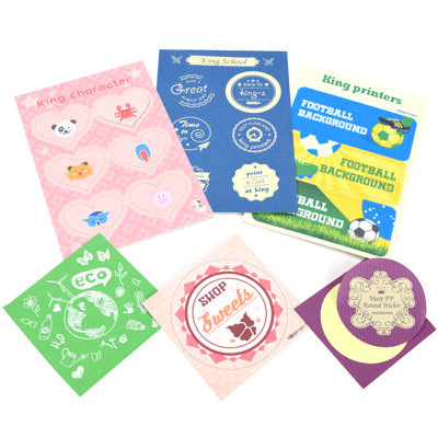オリジナルデザインのステッカーを100枚から格安で作成いたします。表面に圧着されたしっとりした質感のマットPPフィルムは光沢を抑える効果があり、上品で落ち着いた印象を与えるとともにプレミアムな雰囲気さえ感じさせてくれるでしょう。四角8種、円形9種、型抜き5種、計22種類のサイズから選択可能です。