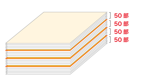 - 50部または100部間隔以外での間紙挿入や、対応商品以外での間紙の挿入につきましてはお問い合わせください。