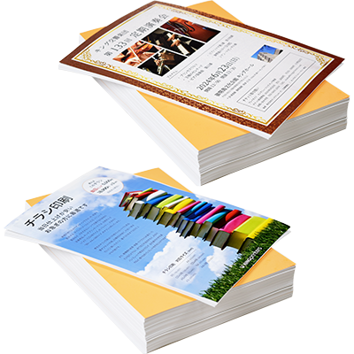 広告宣伝に使われる一般的なチラシを国内の自社工場で印刷して日本全国に発送いたします。この商品は100部ごとに仕切りの紙(間紙(あいし))を挿入することで、お客様のお手元に届いた際に仕分けしやすくいたします。高品質オフセット印刷だから、オフィスのカラーコピーやご家庭のプリンタに比べてとっても色鮮やか。