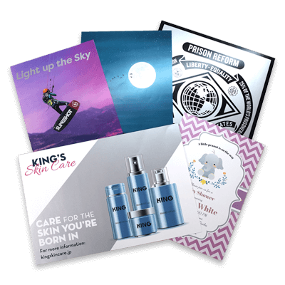 メタリックカラー×ハイエンド向けプロダクションプリンターで、10〜最大1000枚のチラシを色鮮やかに仕上げて日本全国に発送いたします。