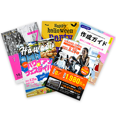 全面ベタ塗りでインパクト重視の印刷物を作成する方法もあれば、差し色としてロゴやイラストなど部分的に使用する方法があります。