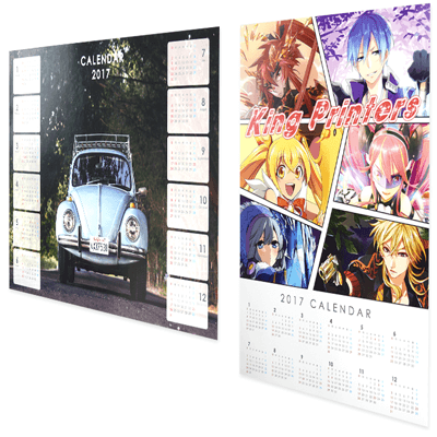 ポスター型のカレンダーを10枚から高品質オフセット印刷にて作成いたします。弊社では国内でも数少ない「B1サイズ対応」の大型印刷機を完備しておりますので、長辺が1mを超えるカレンダーを、1回の印刷で最大10,000枚まで作成することが可能です。単価が安く、大量に配布するノベルティに最適です。