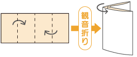 紙の長辺を左右両側から真ん中に向かって折り畳んだパンフレット。