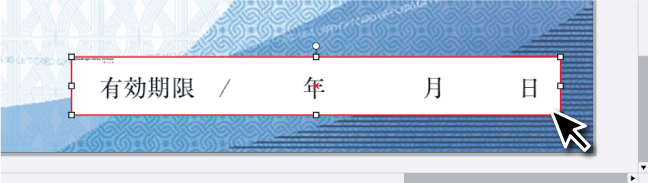 「金券・ギフト券」の背景デザインから選択できる「金額」につきましては、大きさを変えたり(拡大・縮小)、配置する場所を変える(動かす)ことができます。拡大・縮小する手順は通常の文字(テキストボックス)と同じですが、金額を動かす際はテキストボックス内の数字の上にカーソルをあわせる必要がございますのでご注意ください。