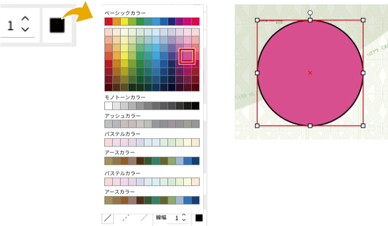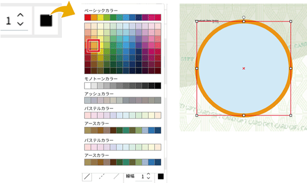カラーパレットからご希望の色を選択して、線の色を変更できます。