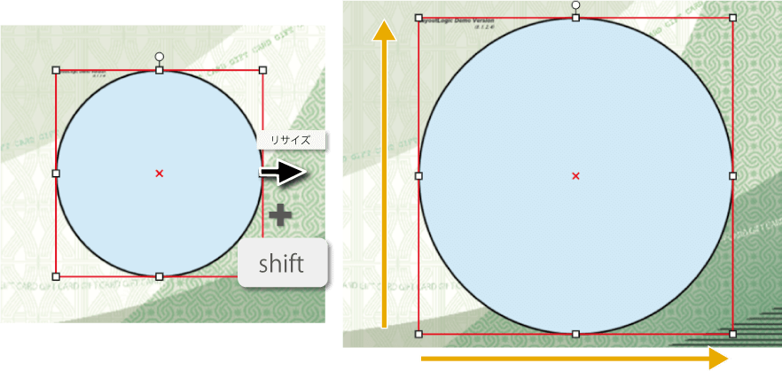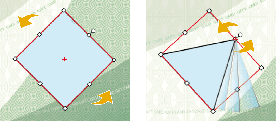 ※ 回転した「図形オブジェクト」を含むグループオブジェクトは、等倍での拡大縮小のみになります(自由変形はできません)。