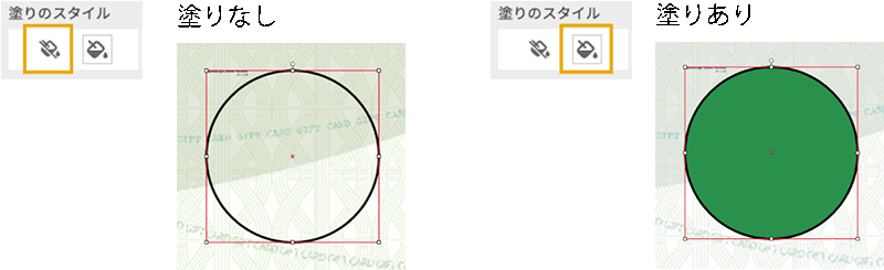 | 塗りあり | 選択オブジェクトの塗りを追加します |