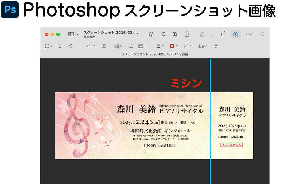 ※フォトショップではデザイン外に加工指示のテキストを配置できないため、スクリーンショット画像などに加工指示を記載してサンプルを作成してください